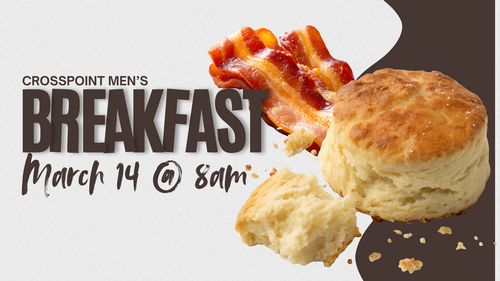 Men, mark your calendars for Men’s Breakfast on Saturday, March 14 at 8am. Come enjoy a great breakfast, fellowship, and encouragement together. Immediately following breakfast, we’ll have a church work day, so if you’re able to stay and help, we’d love that as well.https://crosspointchurchsandspri.subspla.sh/3fs37d7