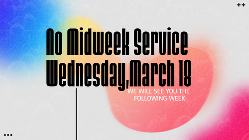 Just a reminder that there will be no Midweek service on Wednesday, March 18 due to Spring Break. We’ll resume our normal schedule the following week.