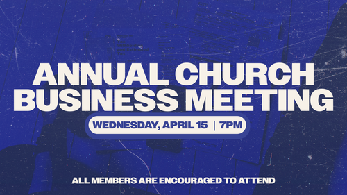 Our Annual Church Business Meeting will be held on Wednesday, April 15. All members are encourage to attend.